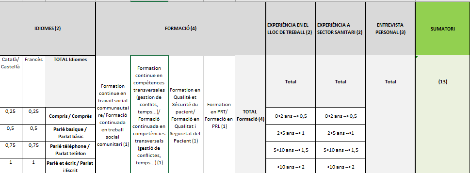 GRAELLA DE VALORACIÓ: