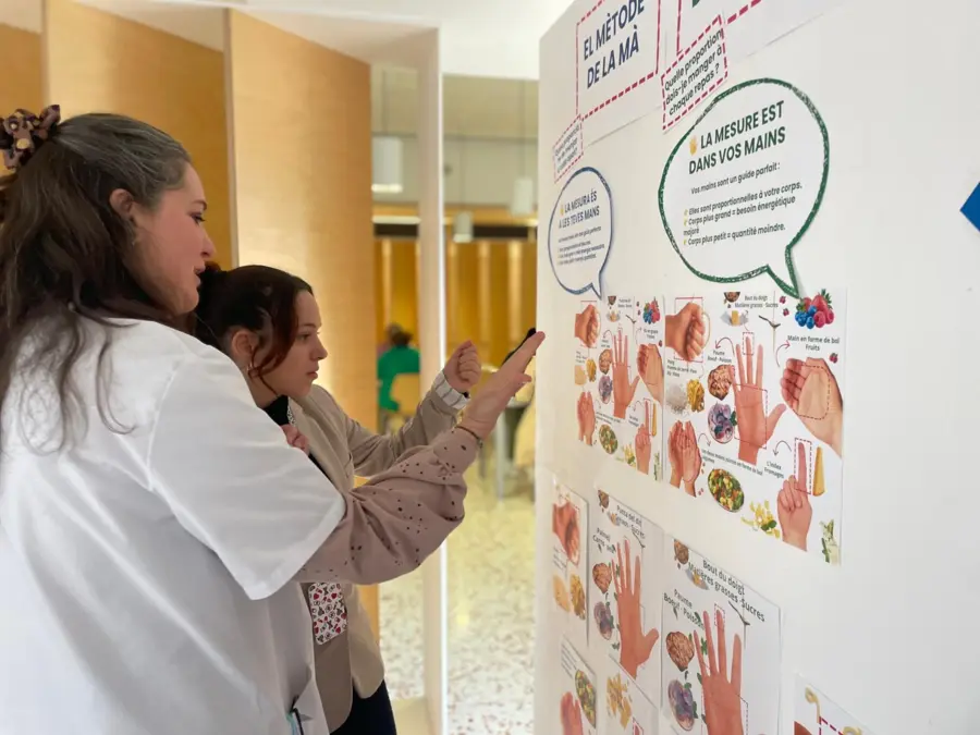La exposición "Pequeños cambios para comer mejor", instalada en el hall del hospital hasta el 30 de abril, explica el método de la mano para orientar las porciones, propone un juego para construir tu plato saludable y ofrece consejos de nutrición con alimentos de temporada.