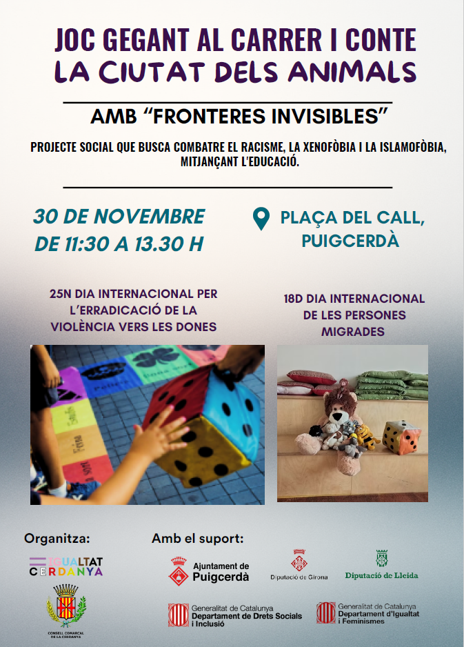 Le Service de Citoyenneté et Immigration du Conseil Comarcal de la Cerdagne organise le 30 novembre, sur la place du Call à Puigcerdà, deux activités participatives destinées aux enfants, aux jeunes, aux familles et au grand public afin de réfléchir sur la diversité et les réalités de la migration.
